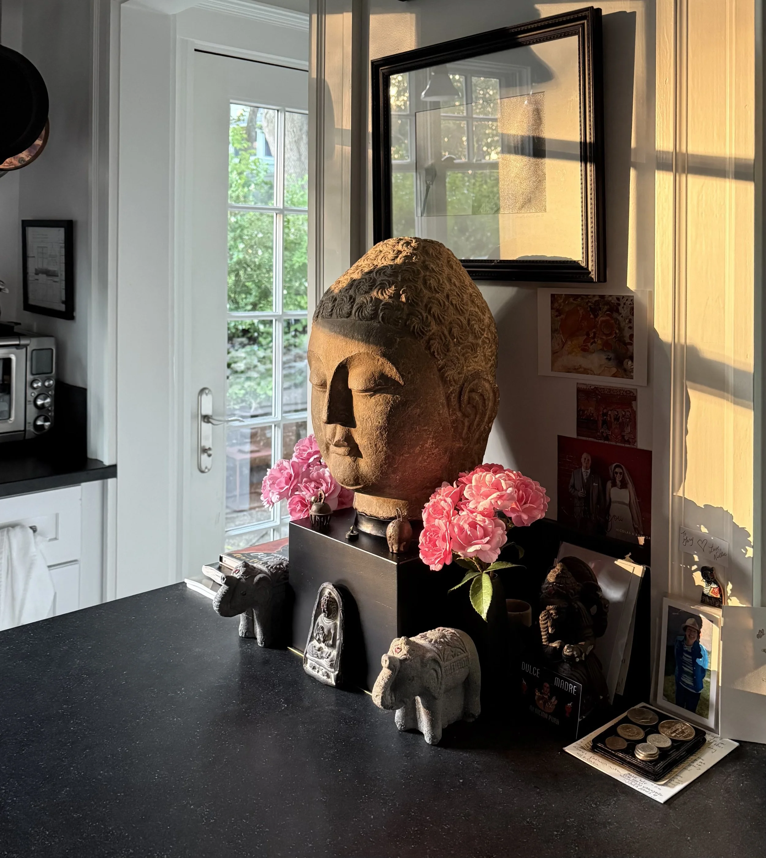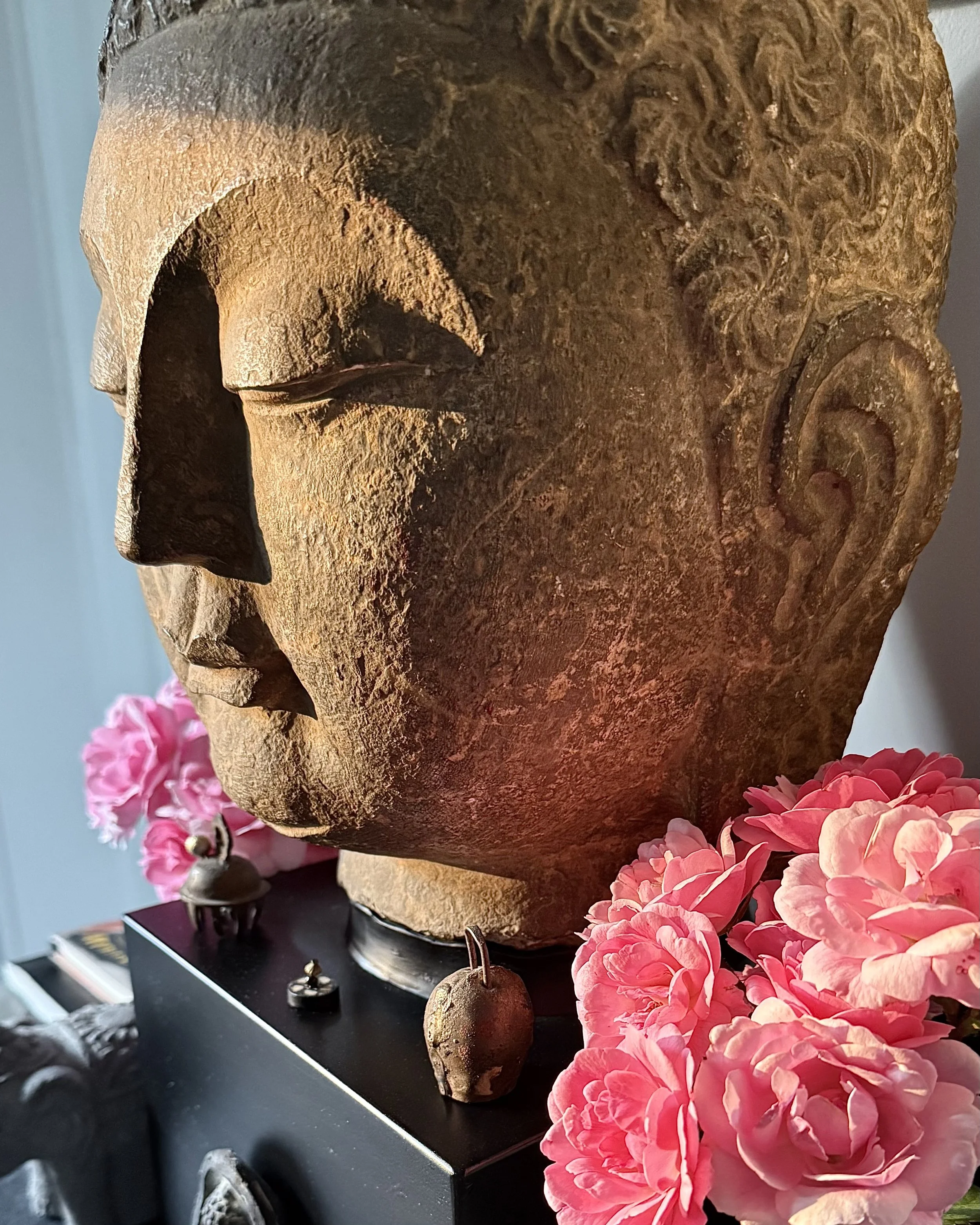 The homeowner is an avid reader, collector, and poet, and this home truly reflects his persona—one of kindness, beauty, and grace. A close friend lovingly refers to his house as the museum because of his vast collection of art, objects, statuary, and books. Where a museum can sometimes feel too precious, this home welcomes, even encourages, a close interaction with its treasures. It is a rare experience indeed to feel such an immediate sense of ease and connection. From the vintage Louis XVI-style dining room chairs to the Tibetan statuary, it takes you on a global journey of discovery and delight. Moral of this story: live with what you love.
